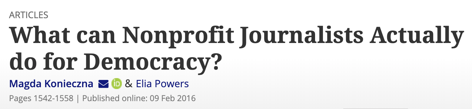 I have written news articles about my research, including how journalists define, measure and discuss their work’s impact, how the nonprofit news consortium behind the Panama Papers measures impact and what students know (and largely don’t know) about news personalization.